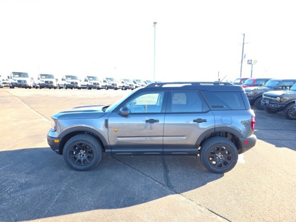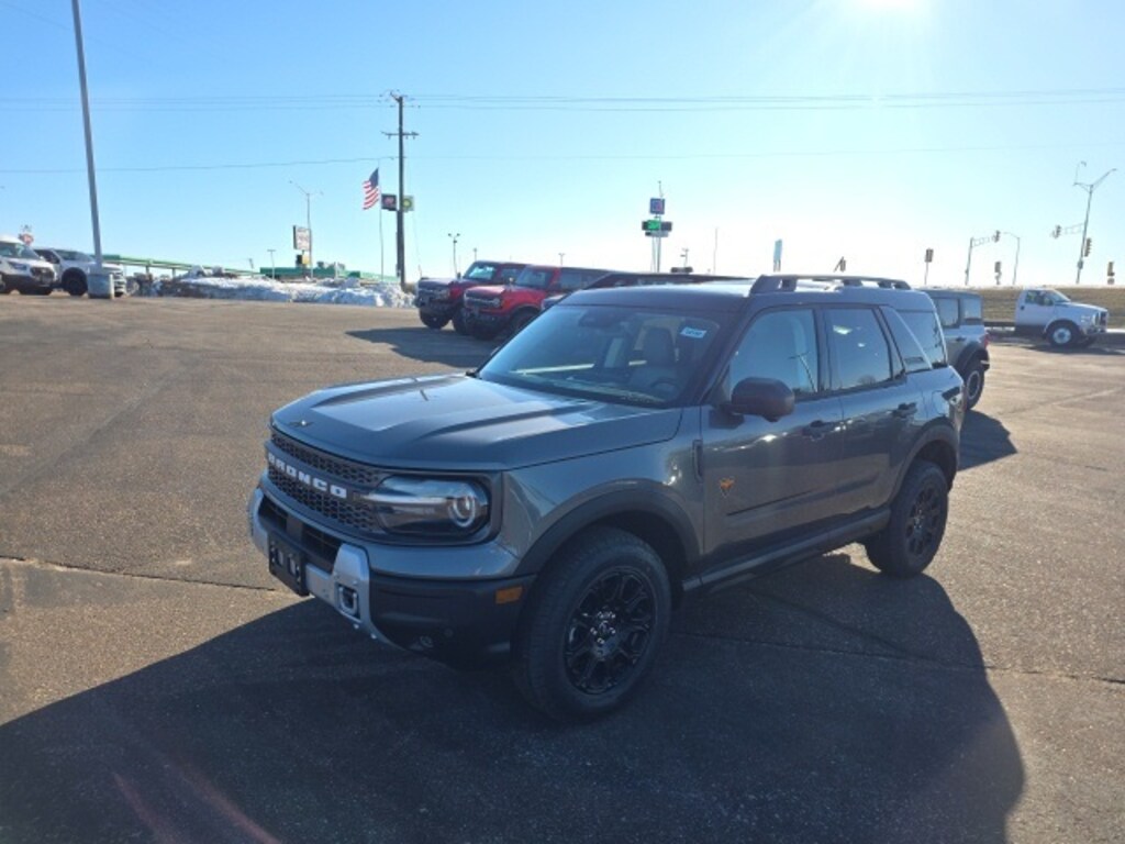 Osseo Ford is pleased to offer this beautiful 2025 Ford Bronco Sport Badlands in Carbonized Gray Metallic, beautifully equipped with 4-Wheel Disc Brakes, 6 Speakers, ABS brakes, Air Conditioning, Alloy wheels, AM/FM radio: SiriusXM, AM/FM Stereo, Auto High-beam Headlights, Auto-dimming Rear-View mirror, Automatic temperature control, Brake assist, Compass, Delay-off headlights, Driver door bin, Driver vanity mirror, Dual front impact airbags, Dual front side impact airbags, Electronic Stability Control, Emergency communication system: SYNC 4 911 Assist, Four wheel independent suspension, Front anti-roll bar, Front Bucket Seats, Front Center Armrest, Front fog lights, Front reading lights, Fully automatic headlights, Garage door transmitter, Heated door mirrors, Heated front seats, Heated steering wheel, Illuminated entry, Knee airbag, Leather Trimmed Front Bucket Seats, Low tire pressure warning, Memory seat, Occupant sensing airbag, Outside temperature display, Overhead airbag, Overhead console, Panic alarm, Passenger door bin, Passenger vanity mirror, Power door mirrors, Power driver seat, Power passenger seat, Power steering, Power windows, Radio data system, Rear anti-roll bar, Rear reading lights, Rear seat center armrest, Rear window defroster, Rear window wiper, Remote keyless entry, Security system, SiriusXM, Speed control, Speed-sensing steering, Speed-Sensitive Wipers, Split folding rear seat, Steering wheel mounted audio controls, SYNC 4 w/Enhanced Voice Recognition, Tachometer, Telescoping steering wheel, Tilt steering wheel, Traction control, Trip computer, Variably intermittent wipers, and Wheels: 17" Matte Black-Painted Aluminum! Carbonized Gray Metallic 2025 Ford Bronco Sport Badlands 4WD 8-Speed Automatic EcoBoost 2.0L I4 GTDi DOHC Turbocharged VCT