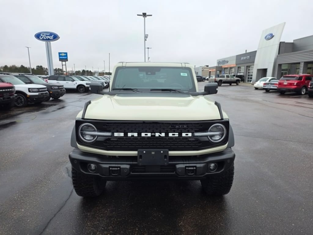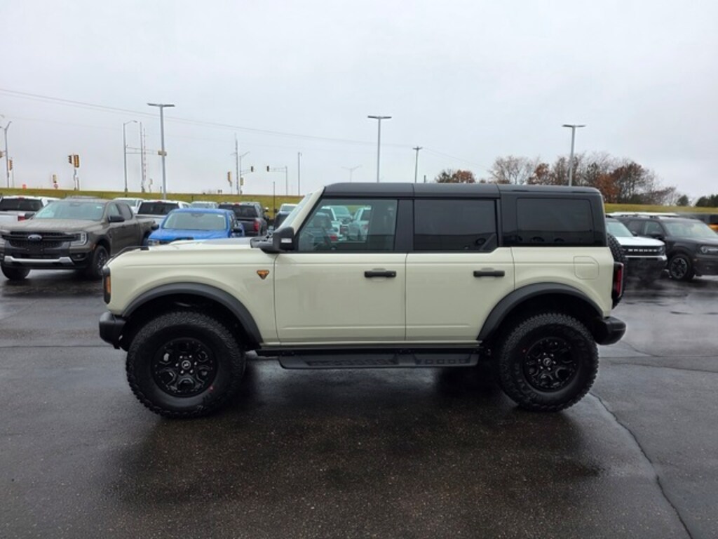 Osseo Ford is delighted to offer this stunning 2025 Ford Bronco Badlands in Desert Sand, beautifully equipped with Black Appearance Package (Black Molded-In-Color Door Handles, Black Molded-In-Color Fender Flares, Black Molded-In-Color Sideview Mirror Caps, and Black-Painted Molded-In-Color Grille), Equipment Group 334A Lux Package (2-Door Intelligent Access w/Lock/Unlock, 360-Degree Camera, Adaptive Cruise Control, Ambient Footwell Lighting, Connected Navigation, Dr & Pass Illuminated Sliding Visor Vanity Mirrors, Dual Smart Charging USB Ports, Dual-Zone Electronic Automatic Temperature Control, Evasive Steering Assist, Front Parking Sensors, Front Row Heated Seats, Information on Demand Panel, Power Outlet - Back Side of Center Floor Console, Radio: B&O Sound System by Bang & Olufsen, Rear Parking Sensors, Sideview Mirrors, and Universal Garage Door Opener), Sasquatch Package (High Clearance Fender Flares, High Clearance Suspension, Position-Sensitive Bilstein Shock Absorbers, and Wheels: 17" Carbonized Gray Painted Aluminum), 4-Wheel Disc Brakes, 7 Speakers, ABS brakes, Air Conditioning, Alloy wheels, AM/FM radio: SiriusXM with 360L, AM/FM Stereo, Auto High-Beam Headlamps, Auto High-beam Headlights, Auto-dimming Rear-View mirror, BLIS Blind Spot Information System, Brake assist, Compass, Delay-off headlights, Driver door bin, Driver vanity mirror, Dual front impact airbags, Dual front side impact airbags, Electronic Stability Control, Emergency communication system: 911 Assist, Exterior Parking Camera Rear, Front anti-roll bar, Front Bucket Seats, Front Center Armrest, Front fog lights, Front License Plate Bracket, Front reading lights, Front wheel independent suspension, Fully automatic headlights, Hard Top Sound Deadening Headliner, Heated door mirrors, Heated front seats, Heated steering wheel, Illuminated entry, Integrated roll-over protection, Lane-Keeping System, Leather Shift Knob, Low tire pressure warning, Marine Grade Vinyl Heated Bucket Seats, Occupant sensing airbag, Outside temperature display, Overhead airbag, Overhead console, Panic alarm, Passenger door bin, Passenger vanity mirror, Power door mirrors, Power steering, Power windows, Pre-Collision Assist w/Automatic Emergency Braking, Radio data system, Raptor-Style Running Board, Rear-View Camera, Rear-Window Defroster & Washer, Remote keyless entry, Security system, Shadow Black Painted Hard Top, SiriusXM w/360L, Speed control, Split folding rear seat, Steering wheel mounted audio controls, SYNC 4, Tachometer, Telescoping steering wheel, Tilt steering wheel, Traction control, Trip computer, Variably intermittent wipers, Voltmeter, and Wheels: 17" Carbonized Gray-Painted Aluminum! Desert Sand 2025 Ford Bronco Badlands 4WD 10-Speed Automatic 2.7L EcoBoost V6