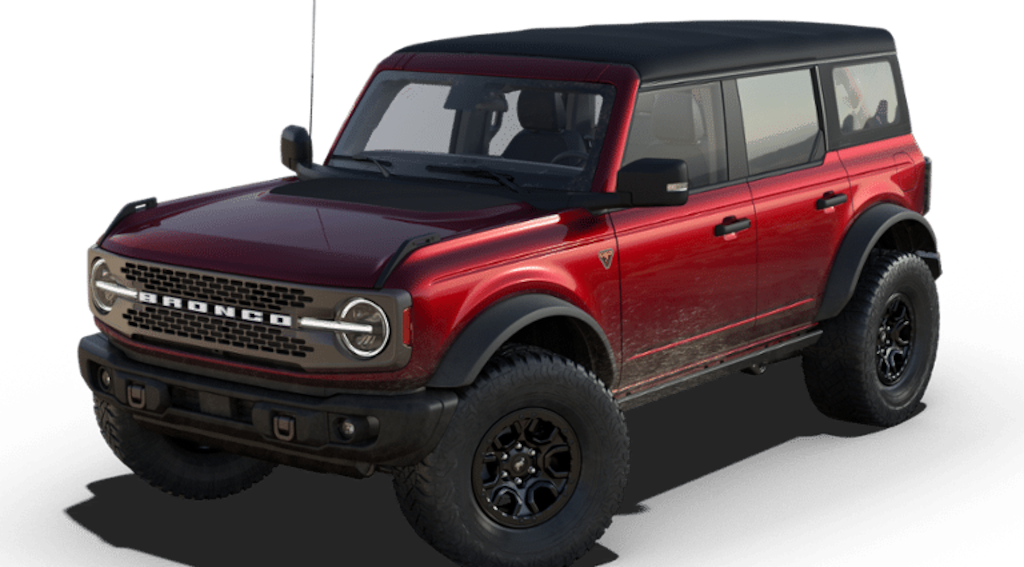Osseo Ford is delighted to offer this wonderful-looking 2025 Ford Bronco Badlands in Ruby Red Metallic Tinted Clearcoat, beautifully equipped with Black Appearance Package (Black Molded-In-Color Door Handles, Black Molded-In-Color Fender Flares, Black Molded-In-Color Sideview Mirror Caps, and Black-Painted Molded-In-Color Grille), Equipment Group 334A Lux Package (2-Door Intelligent Access w/Lock/Unlock, 360-Degree Camera, Adaptive Cruise Control, Ambient Footwell Lighting, Connected Navigation, Dr & Pass Illuminated Sliding Visor Vanity Mirrors, Dual Smart Charging USB Ports, Dual-Zone Electronic Automatic Temperature Control, Evasive Steering Assist, Front Parking Sensors, Front Row Heated Seats, Information on Demand Panel, Power Outlet - Back Side of Center Floor Console, Radio: B&O Sound System by Bang & Olufsen, Rear Parking Sensors, Sideview Mirrors, and Universal Garage Door Opener), Sasquatch Package (High Clearance Fender Flares, High Clearance Suspension, Position-Sensitive Bilstein Shock Absorbers, and Wheels: 17" Carbonized Gray Painted Aluminum), 4-Wheel Disc Brakes, 7 Speakers, ABS brakes, Air Conditioning, Alloy wheels, AM/FM radio: SiriusXM with 360L, AM/FM Stereo, Auto High-Beam Headlamps, Auto High-beam Headlights, Auto-dimming Rear-View mirror, BLIS Blind Spot Information System, Brake assist, Compass, Delay-off headlights, Door Storage Bags, Driver door bin, Driver vanity mirror, Dual front impact airbags, Dual front side impact airbags, Electronic Stability Control, Emergency communication system: 911 Assist, Engine Block Heater, Exterior Parking Camera Rear, Front anti-roll bar, Front Bucket Seats, Front Center Armrest, Front fog lights, Front License Plate Bracket, Front reading lights, Front wheel independent suspension, Fully automatic headlights, Hard Top Sound Deadening Headliner, Heated door mirrors, Heated front seats, Heated steering wheel, Illuminated entry, Integrated roll-over protection, Lane-Keeping System, Leather Shift Knob, Low tire pressure warning, Marine Grade Vinyl Heated Bucket Seats, Occupant sensing airbag, Outside temperature display, Overhead airbag, Overhead console, Panic alarm, Passenger door bin, Passenger vanity mirror, Power door mirrors, Power steering, Power windows, Pre-Collision Assist w/Automatic Emergency Braking, Radio data system, Raptor-Style Running Board, Rear-View Camera, Rear-Window Defroster & Washer, Remote keyless entry, Security system, Shadow Black Painted Hard Top, SiriusXM w/360L, Speed control, Split folding rear seat, Steering wheel mounted audio controls, SYNC 4, Tachometer, Telescoping steering wheel, Tilt steering wheel, Traction control, Trip computer, Upgraded Carpet Floor Mats, Variably intermittent wipers, Voltmeter, and Wheels: 17" Carbonized Gray-Painted Aluminum! Ruby Red Metallic Tinted Clearcoat 2025 Ford Bronco Badlands 4WD 10-Speed Automatic 2.7L EcoBoost V6