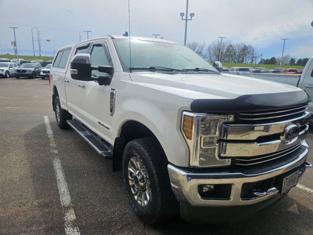 Osseo Ford is pleased to offer this rock solid 2019 Ford F-250SD Lariat in White Platinum Metallic Tri-Coat, beautifully equipped with Chrome Package (6" Angular Chrome Step Bars, Body-Color Door Handles w/Chrome Insert, Chrome Exhaust Tip, Unique Chrome Mirror Caps, and Wheels: 18" Chrome PVD Aluminum), FX4 Off-Road Package (Hill Descent Control, Off-Road Specifically Tuned Shock Absorbers, and Unique FX4 Off-Road Box Decal), Lariat Value Package (Easy Entry®/Exit Memory Driver's Seat Feature, LED Box Lighting, Memory Power-Adjustable Pedals, Power Heated/Cooled Driver Seat w/Memory, Power Heated/Cooled Passenger Seat, PowerScope Trailer Tow Mirrors w/Memory, and Remote Start System), Order Code 608A, GVWR: 10,000 lb Payload Package, 4WD, Voice-Activated Navigation, 10 Speakers, 110V/400W Outlet, 4-Wheel Disc Brakes, 6" Angular Chrome Step Bar, ABS brakes, Adjustable pedals, Air Conditioning, Alloy wheels, AM/FM radio: SiriusXM, AppLink/Apple CarPlay and Android Auto, Auto-dimming Rear-View mirror, Automatic temperature control, BLIS Blind Spot Information System, Brake assist, Bumpers: chrome, Compass, Delay-off headlights, Driver door bin, Driver vanity mirror, Dual Extra Heavy-Duty Alternators (Total 377-Amps), Dual front impact airbags, Dual front side impact airbags, Electronic Stability Control, Emergency communication system: SYNC 3 911 Assist, Engine Block Heater, Exterior Parking Camera Rear, Flow-Through Console, Front anti-roll bar, Front Bucket Seats, Front Center Armrest, Front dual zone A/C, Front fog lights, Front Leather Seating Surfaces 40/Console/40, Front reading lights, Fully automatic headlights, Heated door mirrors, Illuminated entry, Leather steering wheel, Low tire pressure warning, Outside temperature display, Overhead airbag, Overhead console, Panic alarm, Passenger door bin, Passenger vanity mirror, Power door mirrors, Power driver seat, Power passenger seat, Power steering, Power windows, Radio data system, Radio: B&O Sound System by Bang & Olufsen, Rapid-Heat Supplemental Cab Heater, Rear CHMSL Camera, Rear Parking Sensors, Rear reading lights, Rear seat center armrest, Rear step bumper, Rear window defroster, Remote keyless entry, Security system, SiriusXM Radio, Speed control, Split folding rear seat, Steering wheel mounted audio controls, SYNC 3 Communications & Entertainment System, Tachometer, Tailgate Step & Handle, Telescoping steering wheel, Tilt steering wheel, Traction control, Trip computer, Turn signal indicator mirrors, Ultimate Trailer Tow Camera System, Universal Garage Door Opener (UGDO), Upfitter Switches (6), Variably intermittent wipers, and Wheels: 18" Bright Machined Cast Aluminum! LOCAL TRADE, AWD / 4X4 / 4WD, 4WD, 6" Angular Chrome Step Bars, Body-Color Door Handles w/Chrome Insert, Chrome Exhaust Tip, Chrome Package, Easy Entry®/Exit Memory Driver's Seat Feature, FX4 Off-Road Package, Hill Descent Control, Lariat Value Package, LED Box Lighting, Memory Power-Adjustable Pedals, Off-Road Specifically Tuned Shock Absorbers, Order Code 608A, Power Heated/Cooled Driver Seat w/Memory, Power Heated/Cooled Passenger Seat, PowerScope Trailer Tow Mirrors w/Memory, Remote Start System, Unique Chrome Mirror Caps, Unique FX4 Off-Road Box Decal, Voice-Activated Navigation, Wheels: 18" Chrome PVD Aluminum. Recent Arrival! Priced below KBB Fair Purchase Price! Odometer is 21403 miles below market average!